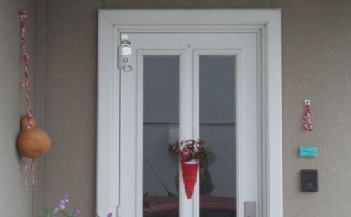 シンプルだけど個性的な正月飾り なにかのおまじないみたいだ 庭の南天と店の花にと買って来た松のお裾分け 極めつけは大きな瓢箪 福が入って来る気配はないけど、それで良いのかも知れない